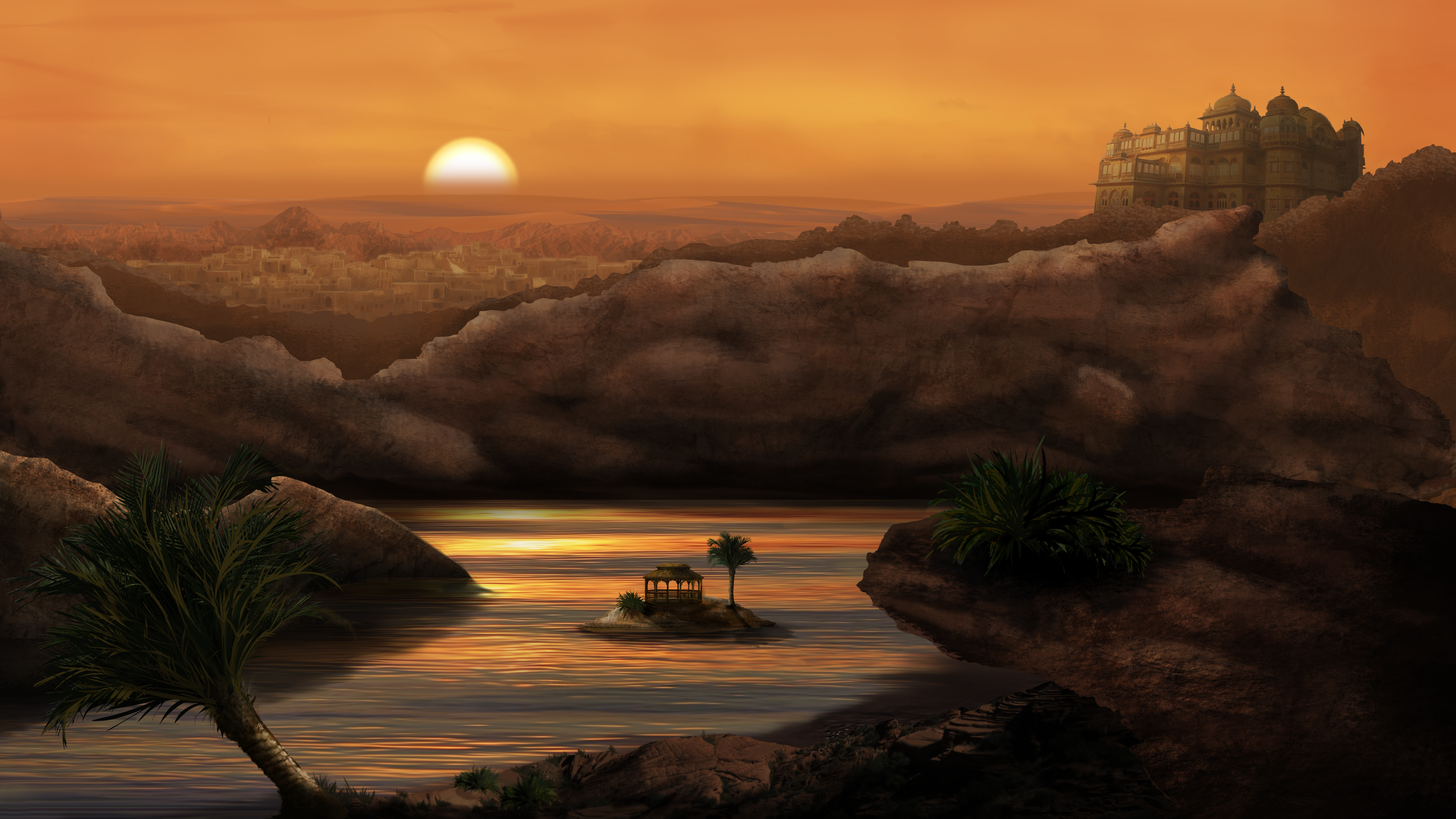 This scene was inspired by Wadi Shab in Tiwi, Oman. I've always been fascinated by ancient trade locations of the Persian Gulf. Image is 4096 x 2160. PROGRAMS USED: Photoshop